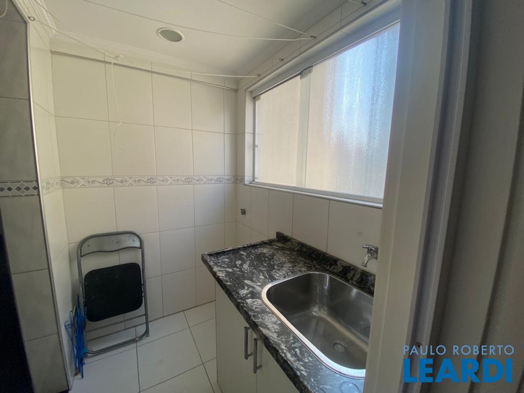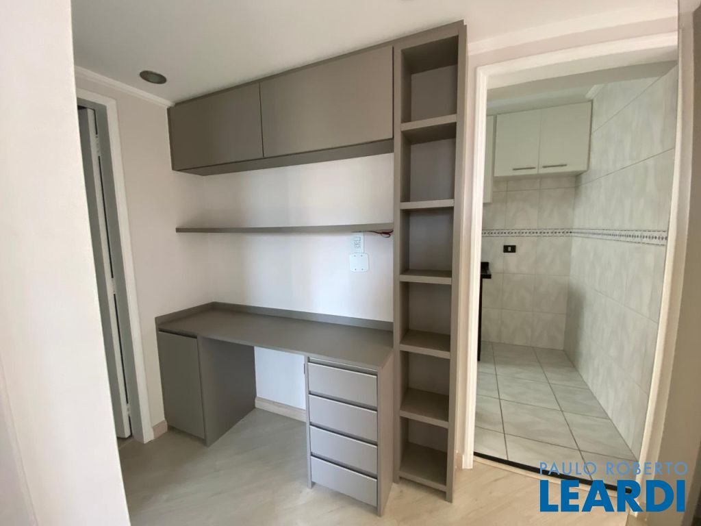 Apartamento com 2 dormitórios, repleto de armários, 2 banheiros, sala com varanda, cozinha com armários e área de serviço.